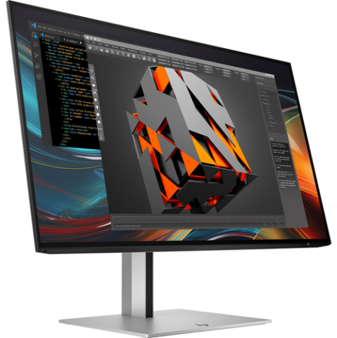 The HP 724pf is built for connectivity and ease of use. It comes equipped with DisplayPort, HDMI, and USB Type-A to B cables, along with a built-in USB 3.2 Gen 1 hub, allowing for easy connection to various devices. The ergonomic design features adjustable display positions, including height, pivot, swivel, and tilt, complemented by a 4-sided Micro-Edge design for a seamless multi-monitor setup.
