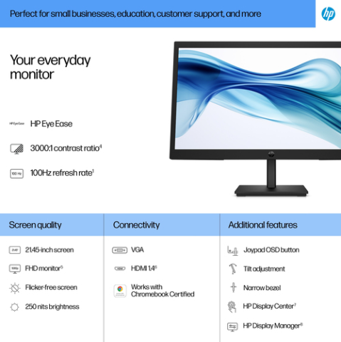 - Hp Eye Ease technology enhances visual comfort